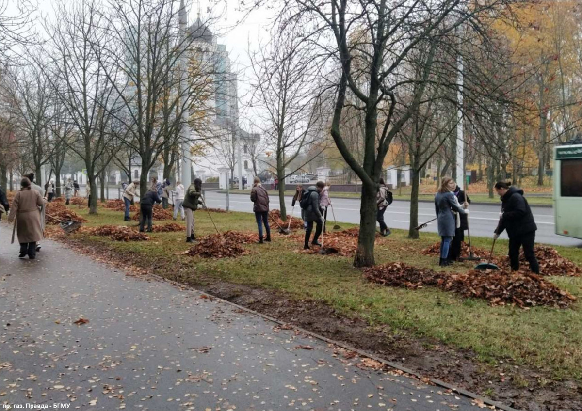 БГМУ (уборка листвы по пр. газ. "Правда");