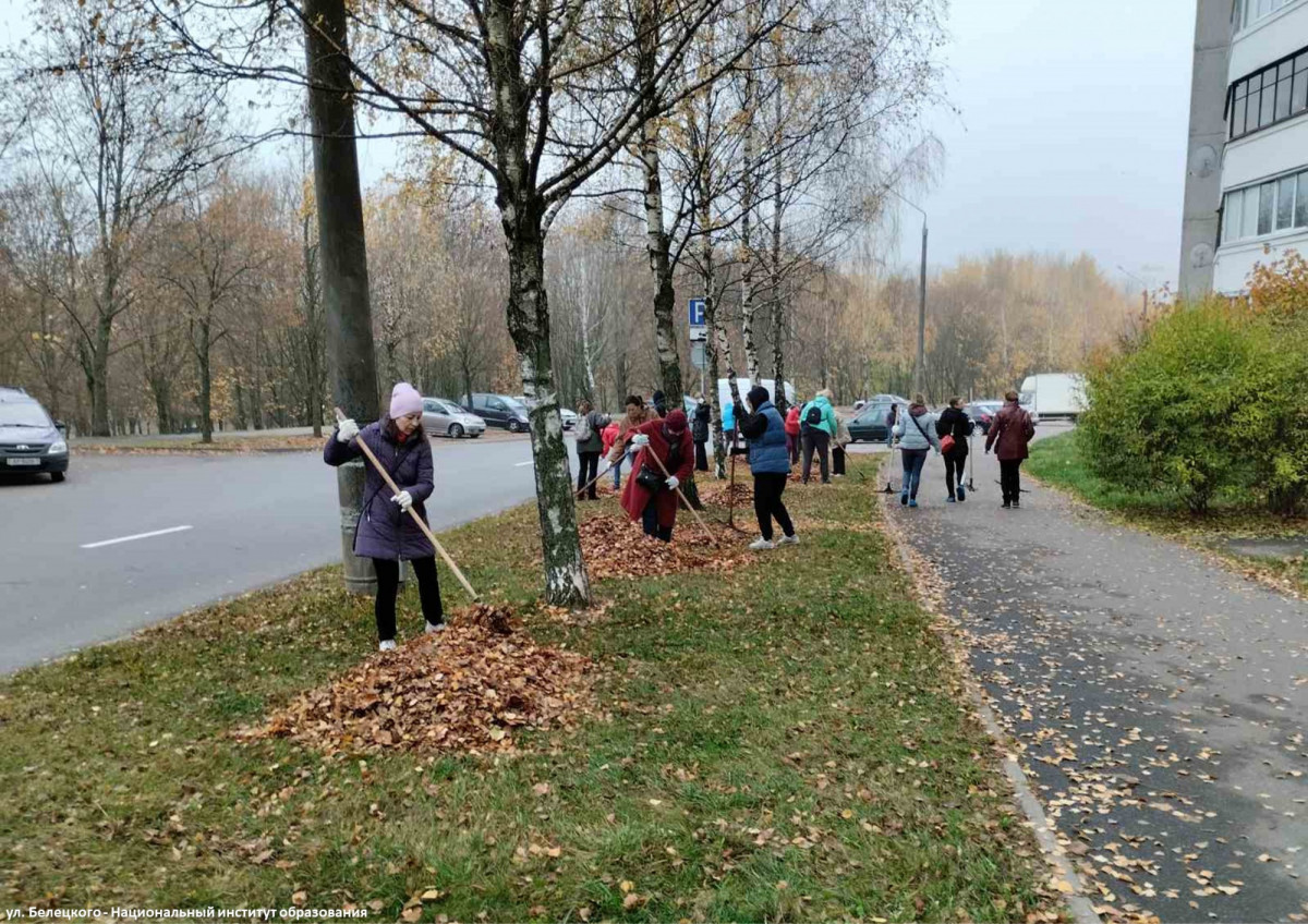 Национальный институт образования (уборка листвы по ул. Белецкого);
