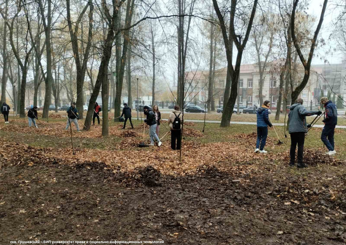 БИП университет права и социально-информационных технологий (уборка листвы в скв. Грушевский, по ул. Коллекторная);