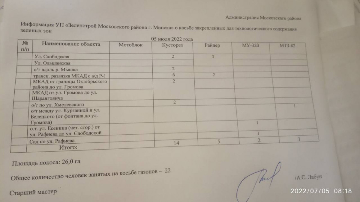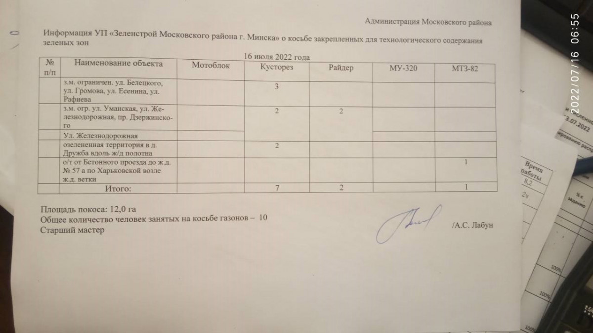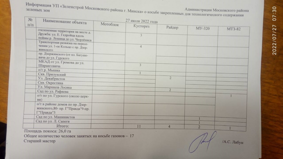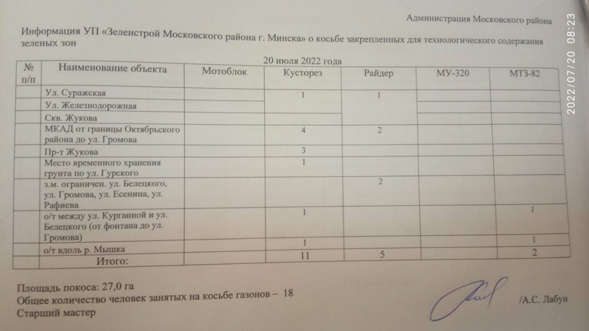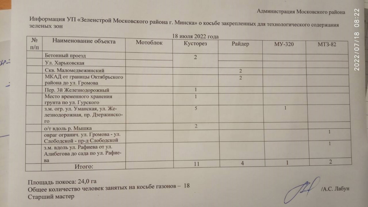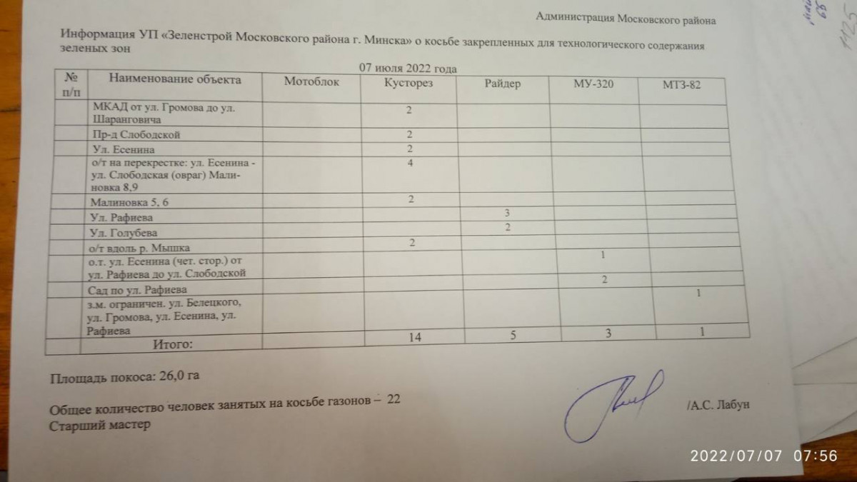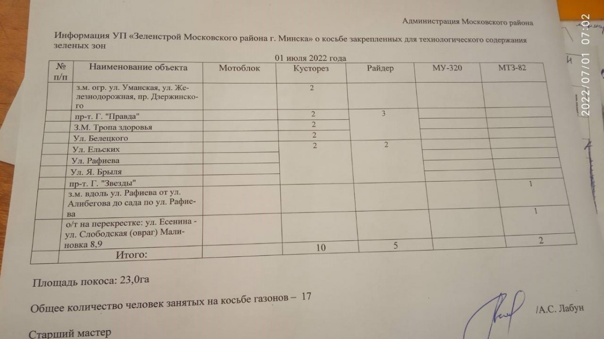 Отчет по косьбе - июль