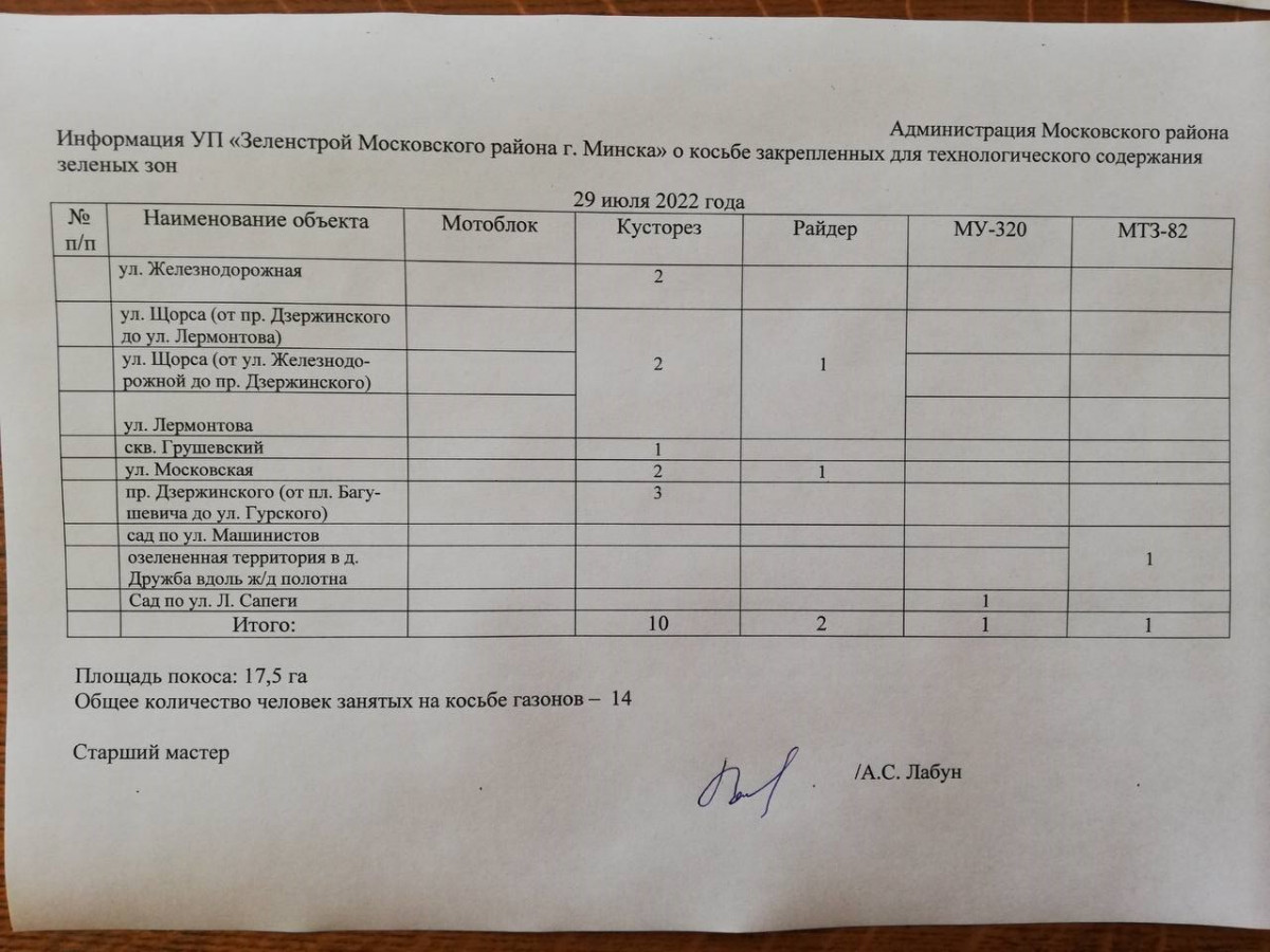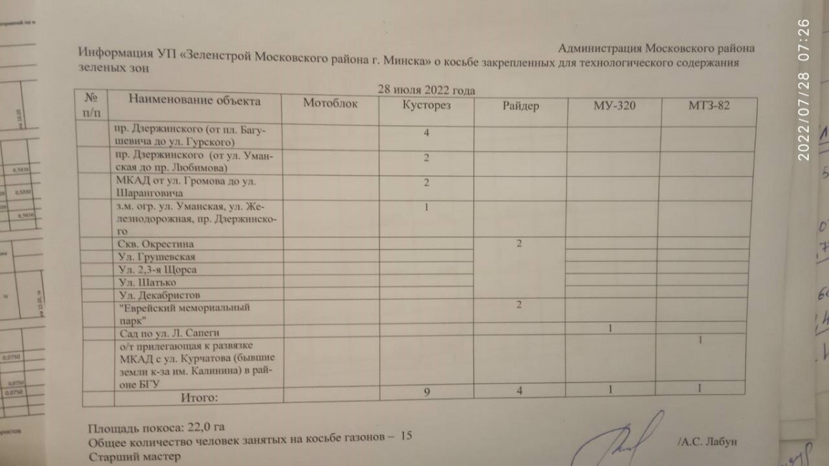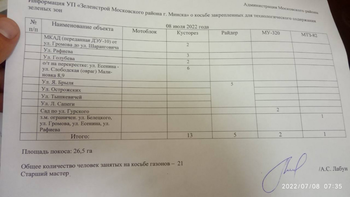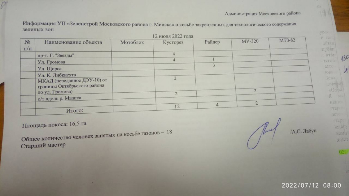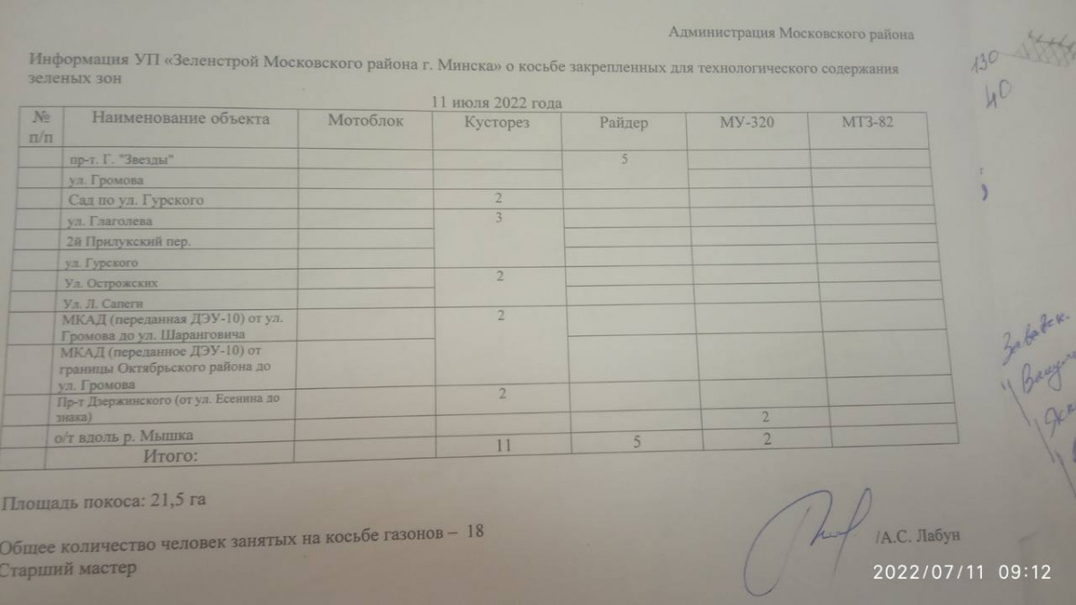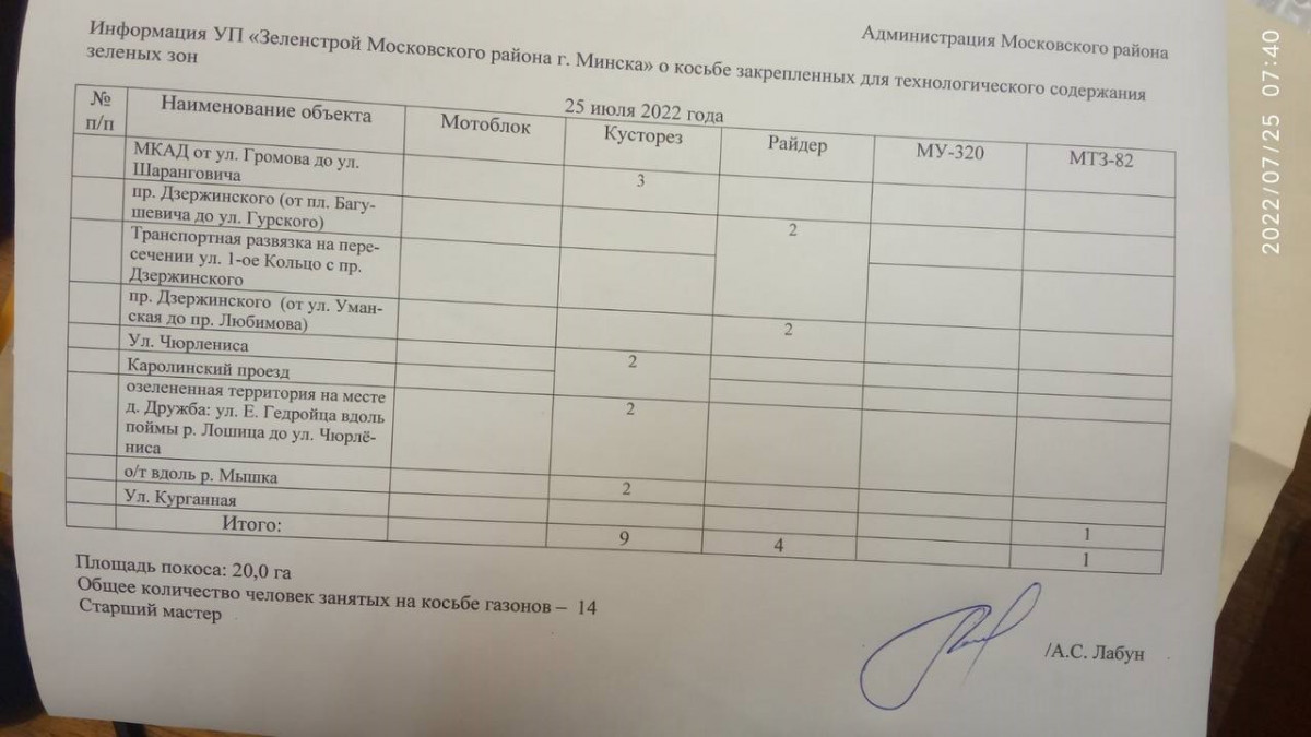 Отчет по косьбе - июль