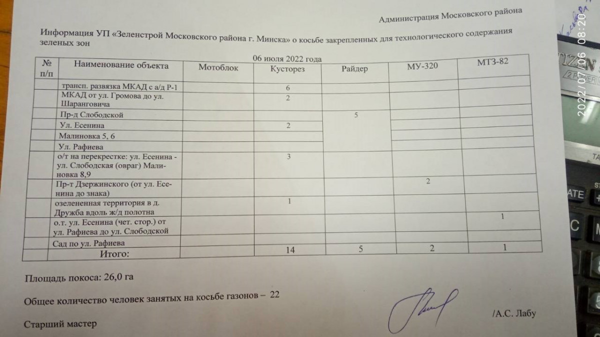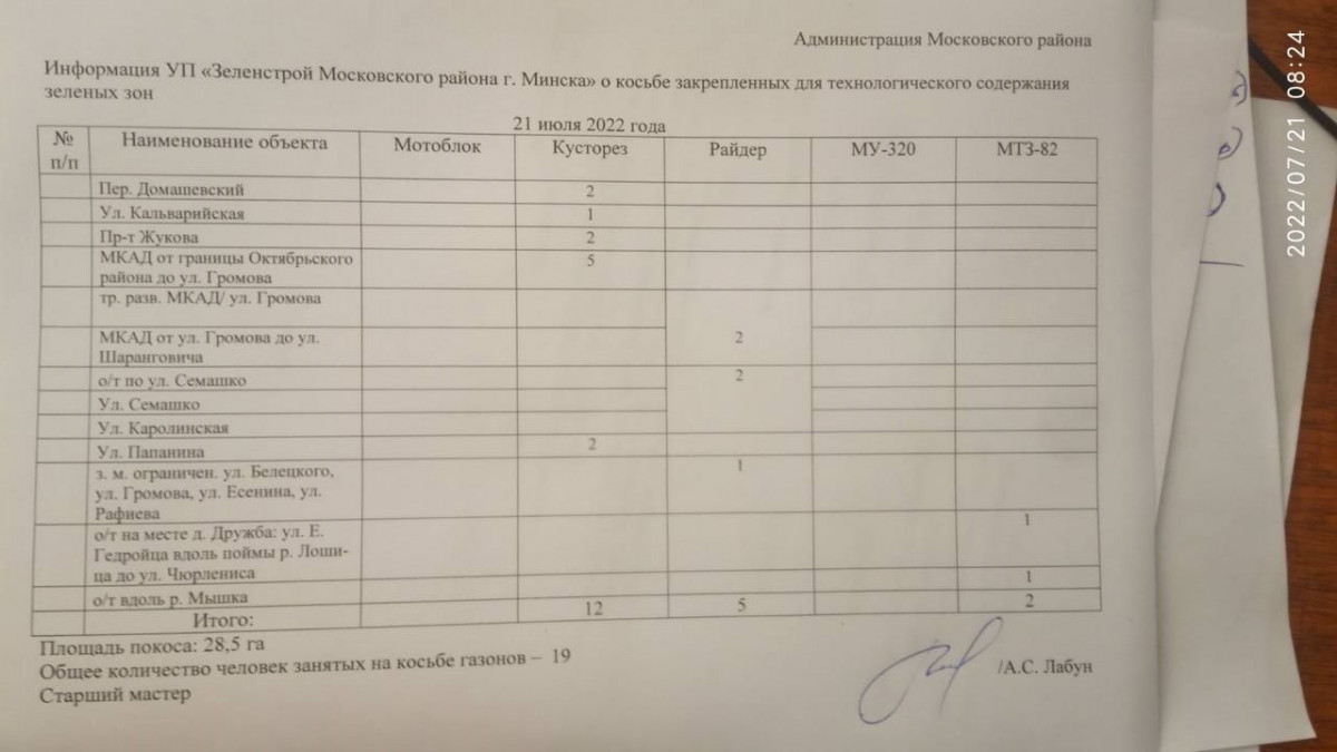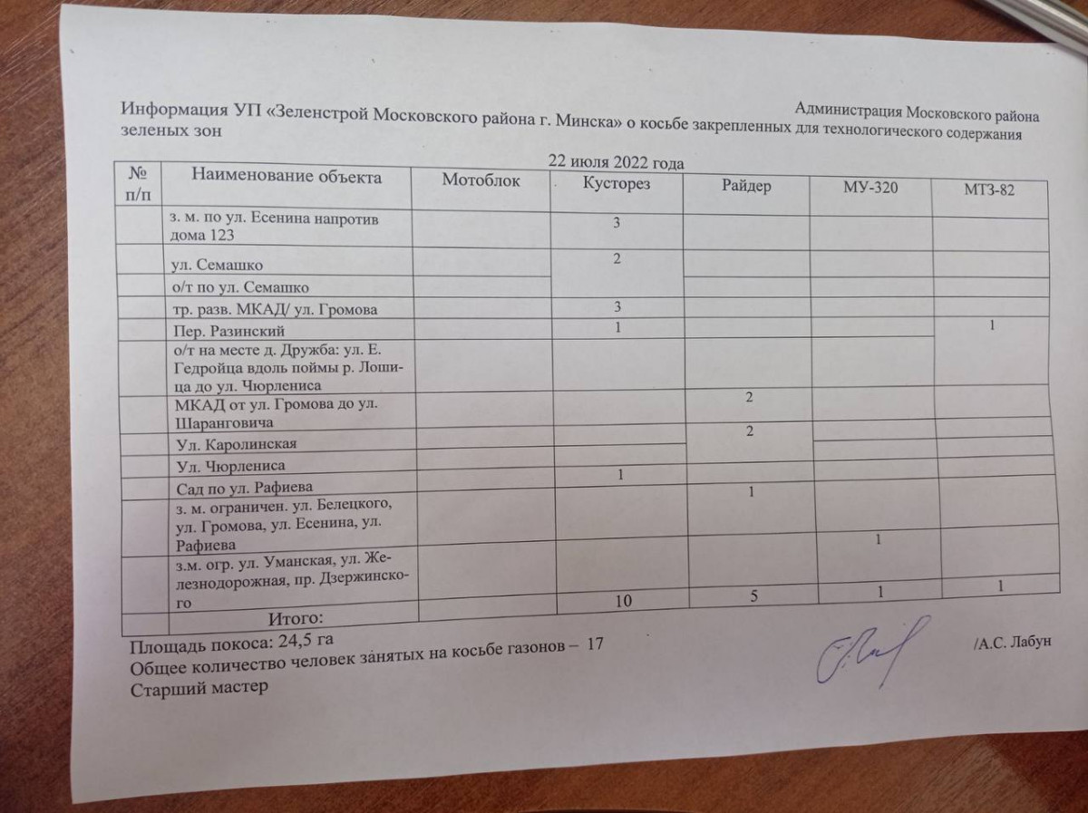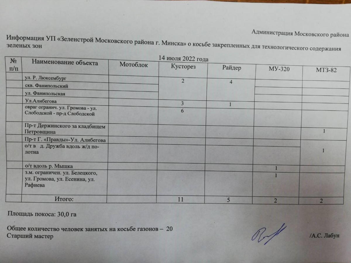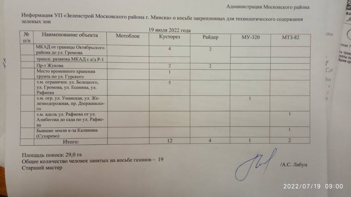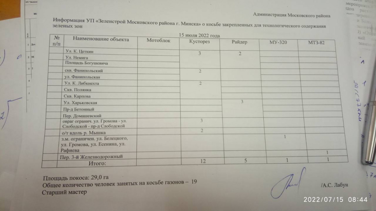 Отчет по косьбе - июль